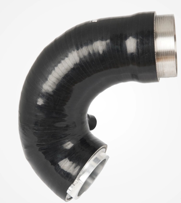 Das Kit wird mit einem Schlauch in schwarzem Finish, einem CNC-gefrästen Adapter zum Turbolader und hochwertigen Schlauchschellen geliefert.