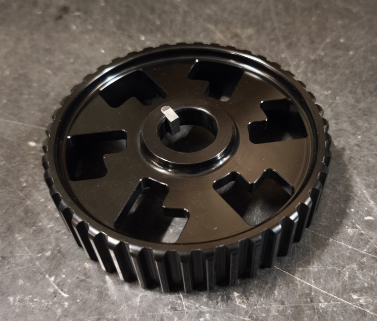 - Wir verwenden hochfestes Aluminium, bei dem auch nach hoher Laufleistung keine Einlaufspuren des Zahnriemens auftreten.