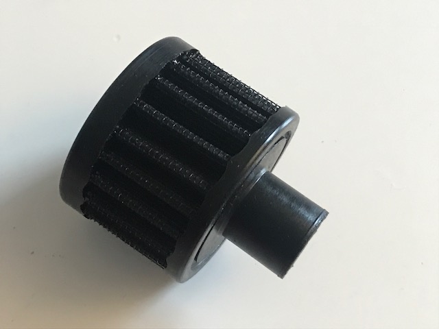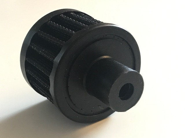 Kleiner Luftfilter in schwarz für verschiedene Anwendungsbereiche wie zum Beispiel die Kurbelwellengehäuseentlüftung oder für einen Oil-Catch Tank. Durch die komplett schwarze Farbe (sowohl die Filterwolle, als auch die Silikonelemente) ist der Luftfilter kein auffälliger Farbkleks im Motorraum und deutlich unauffälliger verbaubar als Produkte anderer Hersteller.
