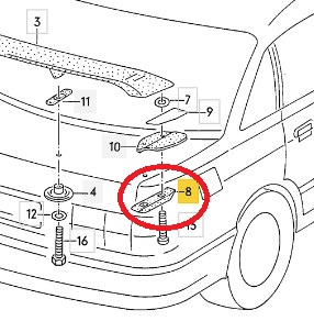 Je Fahrzeug / Spoiler sind zwei dieser Halter verbaut (links und rechts)