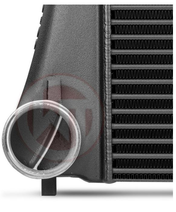 Der Competition Ladeluftkühler hat folgende Netzabmaße (620mm x 440mm x 65mm) und besitzt somit 17,7 Liter äußeres Ladeluftvolumen (OEM 9 Liter). Das neuentwickelte Competition-Hochleistungsnetz (Tube Fine) gewährt den angrenzenden Bauteilen, wie z.Bsp. dem Wasserkühler, noch genügend Luftstrom und ist zudem noch sehr leicht. Der Ladeluftkühler besitzt dadurch ein Gesamtgewicht von nur 9,2kg. Die Aluminiumguss Endkästen wurden im CAD erstellt und mit Hilfe von CFD Simulationen für bestmöglichen internen Luftstrom optimiert. Eine im Endkasten integrierte Luftführung ermöglicht eine homogene Füllung des Competition Hochleistungsnetzes. Die Ein- und Auslässe des Ladeluftkühlers wurden auf Ø 70mm vergrößert, daher kommt dieses Kit mit verstärkten Silkonschläuchen.