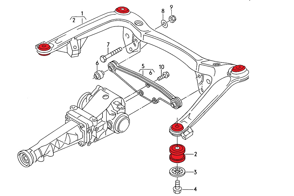 Die Buchsen sind für die Hinterachse: Audi B4 (Quattro), Limousine/Avant-Versionen (inkl. S2 / RS2) und Audi B5 A4/S4/RS4 (Quattro).