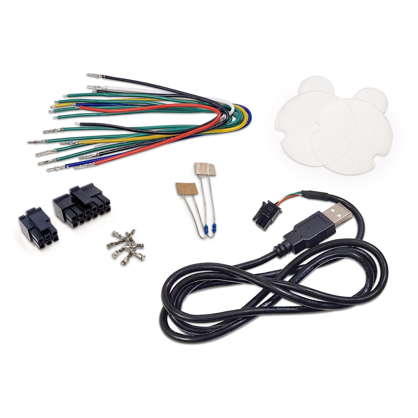 - Verschiedenfarbige vorkonfektionierte Anschlusskabel (Länge: 20 cm, Verwendungszweck: Spannungsversorgung, Can Bus, analoge Eingänge, 5V, Sensormasse)