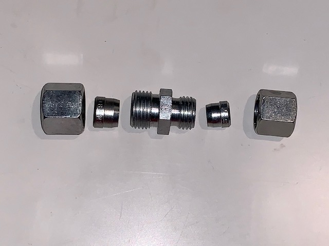 Set besteht aus Doppelverschraubung mit 2 Stück Schneideringen und Muttern zum verschrauben.