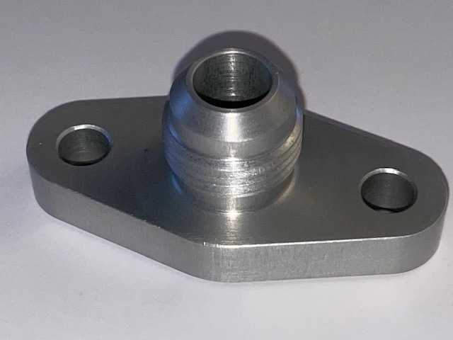 - CNC gefräster Aluminium Ölrücklauf Adaption auf Dash 10 (AN10)